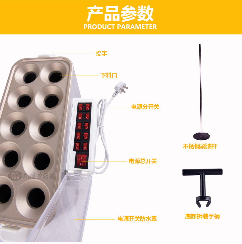燃氣蛋腸機,電熱蛋腸機,快速升溫,360度環繞加熱,5分鐘即可做出鮮嫩的蛋腸,一次做十個蛋卷,平均每半分鐘即可烤熟一根,有效縮短等待時間,提高產品銷售額,蛋腸蛋卷美味吸引過往人群,小吃致富首選小設備,操作簡單。眾得力廚具,給我一個空間,服務一輩子。